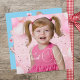 Cute Pink Floral Bow Girl Photo Birthday Thank You Card