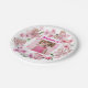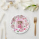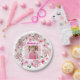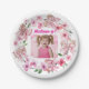 Cute Pink Floral Bow Photo 1st Birthday Party Paper Plate