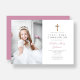 Cute Pink Floral Cross Photo Girl First Communion Invitation