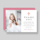 Cute Pink Floral Cross Photo Girl First Communion Thank You Card