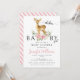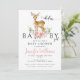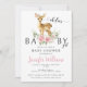 Cute pink watercolor baby deer floral baby girl shower invitation.