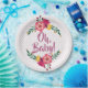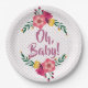 Cute Pink Floral Oh Baby Baby Shower Paper Plate