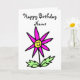 Cute Pink Flower Smiling Face Birthday Card