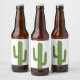 Cute Pink Flower Southwestern Green Cactus Beer Bottle Label