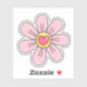 Sticker featuring a cartoon illustration of a pretty little pink flower with a pink heart in the centre.