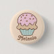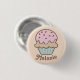 Sweet personalised button with cute illustration of a pink frosted cupcake.