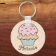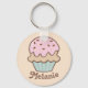 Sweet personalised keychain with cute illustration of a pink frosted cupcake.
