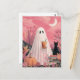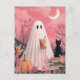 Cute Pink Ghost and Black cat Postcard