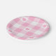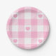 Cute Pink Gingham Vichy With Hearts Paper Plate