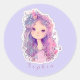 Cute pink girl 3, personalised classic round sticker