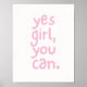 Cute Pink Girl Power Quote Yes Girl You Can Poster
