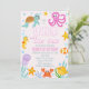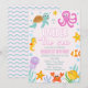 First birthday invitation for a baby girl featuring various sea creatures or sea critters and some seaweed. This girl's under the sea birthday invitation is ideal for a girl's under the sea themed first birthday party.
