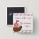 This square girls birthday party pinback button has a pink and purple pirate theme! There is a blonde hair pirate holding a sword sailing on her pirate ship standing next to a parrot on the left side. At the top and bottom borders, there is a trendy pink, white, taupe, and aqua stripes pattern. Ahoy Matey! is written at the top. On the right, Birthday Girl! is written, but you can easily customise the text to say whatever you'd like! Some design elements by STOCKBERRY STUDIO