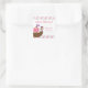 This sweet rounded square girls birthday party sticker has a pink and purple pirate theme! There is a brown hair pirate sailing on her pirate ship standing next to a parrot on the left side. At the top and bottom borders, there is a trendy pink, white, taupe, and aqua stripes pattern. At the top, Ahoy Matey is written. On the right, you can easily personalise your name. Some design elements by STOCKBERRY STUDIO