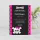 The Cute Pink Girls Skull Birthday Invitation is a fun and quirky design for any birthday girl. It features a skull with a pink bow ,and the he background is pink with black polka dots. This card is perfect for any little girl who loves skulls and polka dots. delightfuldoodles