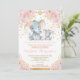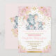 Cute Pink & Gold Elephant Girl Baby Shower Invitation