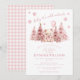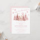Celebrate the arrival of your little one with our cute winter 'baby it's cold outside' themed baby girl shower invitation. Featuring cute teddy bear with the bow holding pink balloon, sitting in between decorated pine trees and pink snowflakes falling from the sky. This invitation sets the perfect tone for a sweet preppy winter or Chirstmas shower celebration.