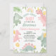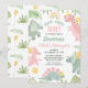 Cute Pink Green Girls Dinosaur 1st Birthday Invitation