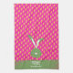 Cute Pink Green Happy Easter Bunny And Carrots Tea Towel