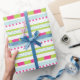Cute Pink Green Mint Stripes Pattern Wrapping Paper