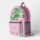 Cute Pink Green Preppy Palm Tree Monogram Name Printed Backpack