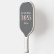 A grey pickleball paddle with a pink pickleball and the words, "pickleball boss". Personalize it with your name.
