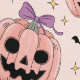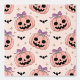Add a touch of sweet spookiness with this unique Halloween seamless pattern! Featuring charming pink jack-o'-lanterns adorned with purple bows, scattered with black bats and sparkling stars on a light pink background. Perfect for a fun, feminine, and festive Halloween decor.