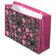 Celebrate your love for pets with this adorable customisable gift bag design featuring bright pink hearts, charming floral accents, and whimsical patterns on a dark background. Perfect for showcasing your furry friend's photo, this playful and vibrant design adds a personal and heartwarming touch to your gift-giving.
