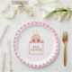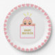 Paper plate framed with cute pink hearts and a lovely baby with baby shower text. Baby Shower text can be personalised,