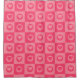 This cute shower curtain has a pattern of pink hearts inside pink circles and squares.