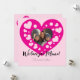 A square Mother's Day card with a pink photo frame in a heart shape and a lot of small hearts. Create a wonderful personalised card for any mother.