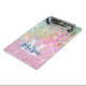 Cute pink iridescent unicorn faux glitter monogram mini clipboard