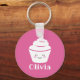 Cute pink kawaii cupcake design keychain with kids. Personalized ring key chain for children and adults. Add your own name or quote. Change quantity to get the cheap bulk price. Girly cup cake drawing with smiling face and rosy cheeks. Birthday gift ideas for her.