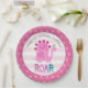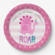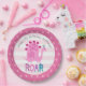 Cute Pink Kawaii Dinosaur Roar Girl Birthday Name Paper Plate