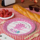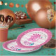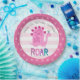 “Roar”. A fun, whimsical, playful visual of a cute, bold, kawaii, pink brontosaurus, and fun, handwritten typography over a light pink and white striped circle background, honours the birthday child. An adorable pink crown pattern overlaying dusty rose pink is on the rim, framing the illustration. Add love and joy to your party whenever you use this simple, modern, and whimsical, personalised paper plate. Your choice of 2 sizes: 7” or 9”, round or square shape, or 7” bowl. This charming paper plate is guaranteed to set just the right tone for your event! Matching invites, stickers, napkins, and other birthday goodies are also available in this special and fun collection.