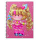 This is a cute pink kawaii doll with a sparkly pink background. She's rocking her panda bear shoes and making a fashion statement. An adorable notebook for girls.