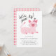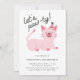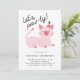 Cute birthday party invitation for your child's cat theme party. Illustration of a pink cat with a smile on her face wearing a party hat. The text above says "let's paw-ty!" The party information follows. Texts are easily customisable online. The back of the card is in pink plaid that matches the cat's colour.