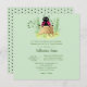 Cute pink ladybug sitting on a stump with green leaves all around and a green background. Mum to be will be thrilled with this one of a kind baby shower invitation. See matching products with this cute design.