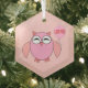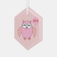 This ornament features a cute cartoon of a pink owl with sleepy eyes, a small beak and cute little feet. The owl is holding a bubblegum pink balloon. There is bright red text inside the balloon that says, “Love you”. This is the perfect gift for showing someone special how much you love them.