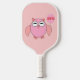 This awesome Pickleball Paddle features a cute cartoon of a pink owl with sleepy eyes, a small beak and cute little feet. The owl is holding a bubblegum pink balloon. There is bright red text inside the balloon that says, “Love you”. This is the perfect gift for showing someone special how much you love them.