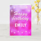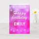 Cute Pink Metallic Foil Star Girly Birthday Card. The design has stars on a pink, purple metallic background. Add your name.