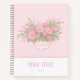 A cute pink notebook with delicate hand-drawn pink flowers loosely coloured for school girls.