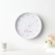 Cute kids round clock, with customisable script with pink numbers. Great for adding a special touch your child's playroom decor.