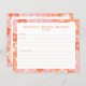 Cute Pink Orange Flowers Bridal Shower Recipe Card