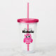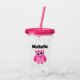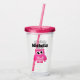 Cute pink owl custom name girl's Birthday party Acrylic Tumbler glass gift. Personalised drink ware for home, school, parties etc. Fun transparent plastic drinking cups for friends and family. Add your own name or funny quote. Includes lid and straw. Funny animal design with big eyes. Create one for daughter, sister, granddaughter, cousin, kids, children etc.