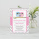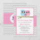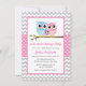 Cute Pink Owl Family Grey Chevron Girl Baby Shower Invitation