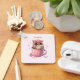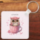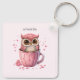 Cute Pink Owl in a Cup Key Ring