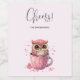 Wine labels with an adorable image of an owl sitting in a coffee mug.
