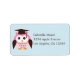 Cute children's graduation address label featuring a pink owl wearing a graduation cap against a blue background. Colour can changed using the customising tool. Graphics ©Babystar Design.