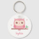 Cute Pink Owl On Branch, Girls Personalised Key Ring